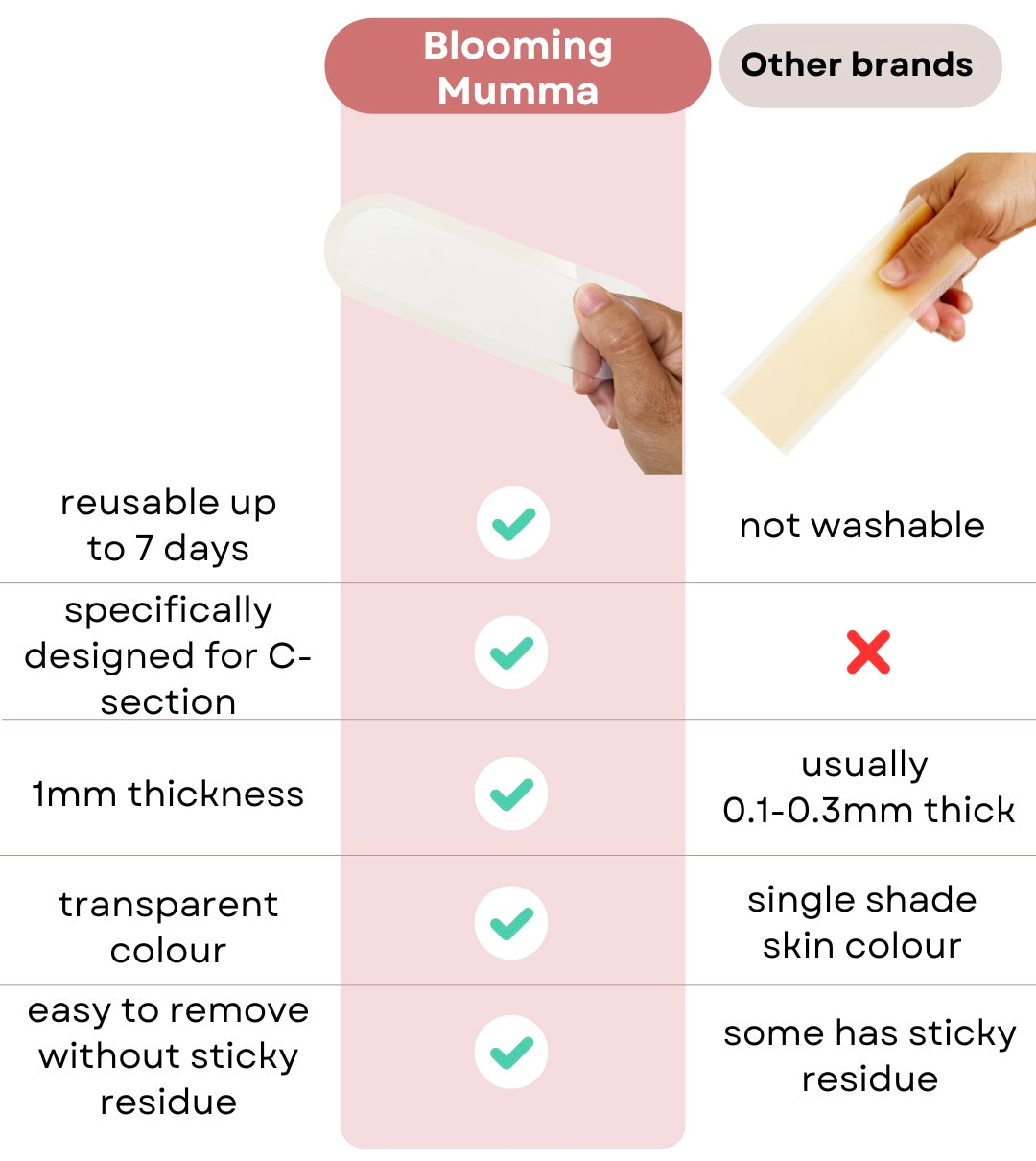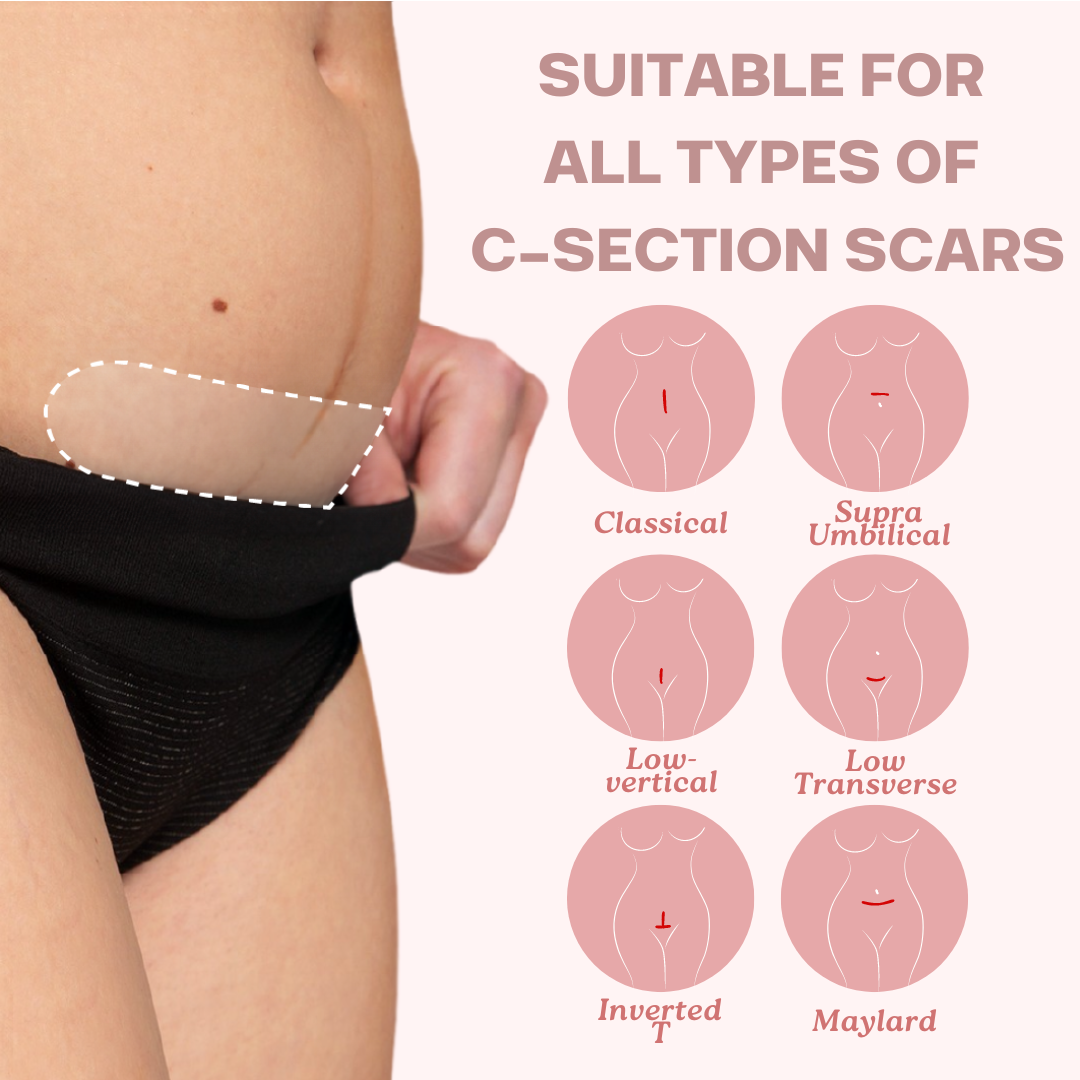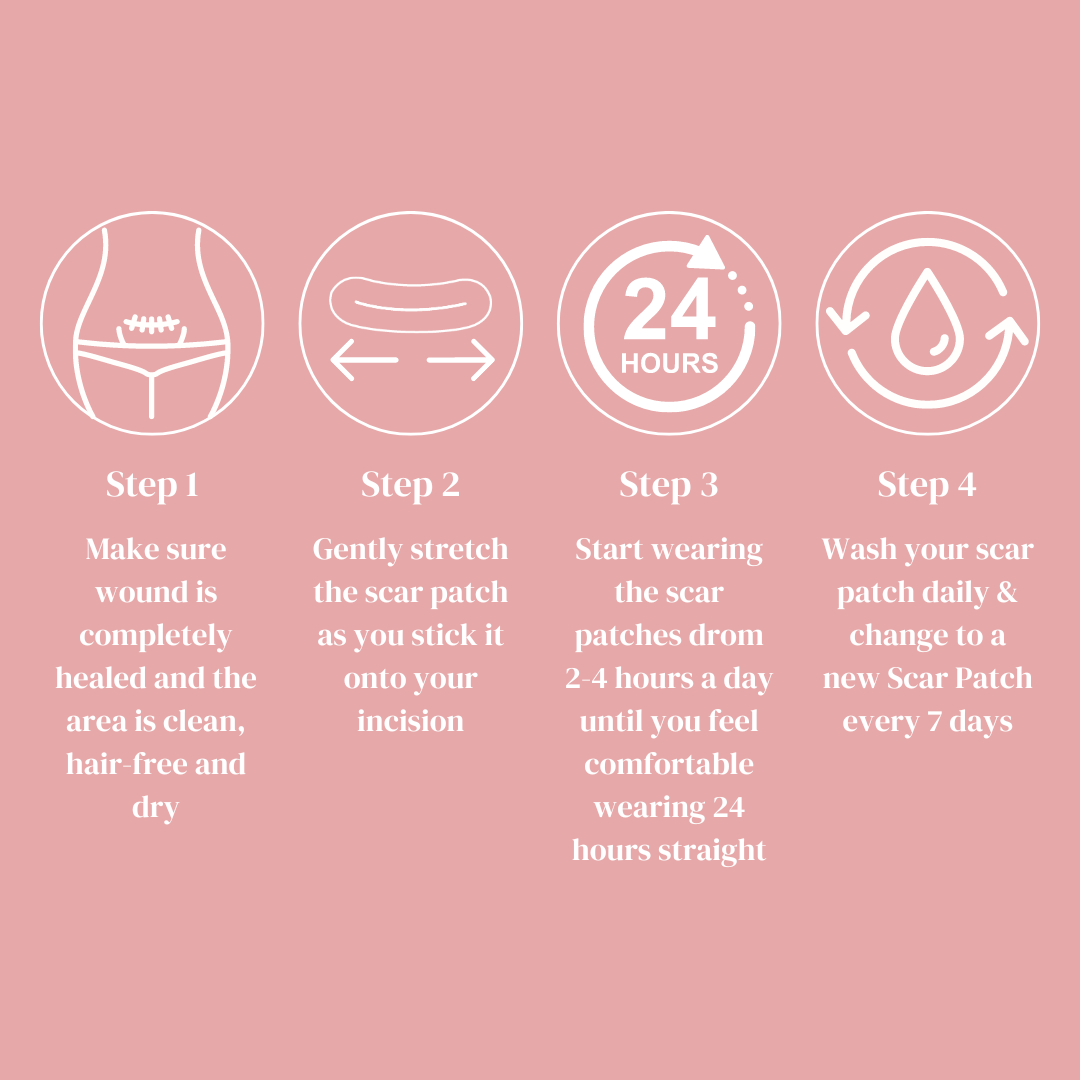 Our Silicone C-section Scar Patches are made with medical-grade silicone. They are reusable and each patch can be used up to one week, we promise it doesn't hurt at all when you peel it off!