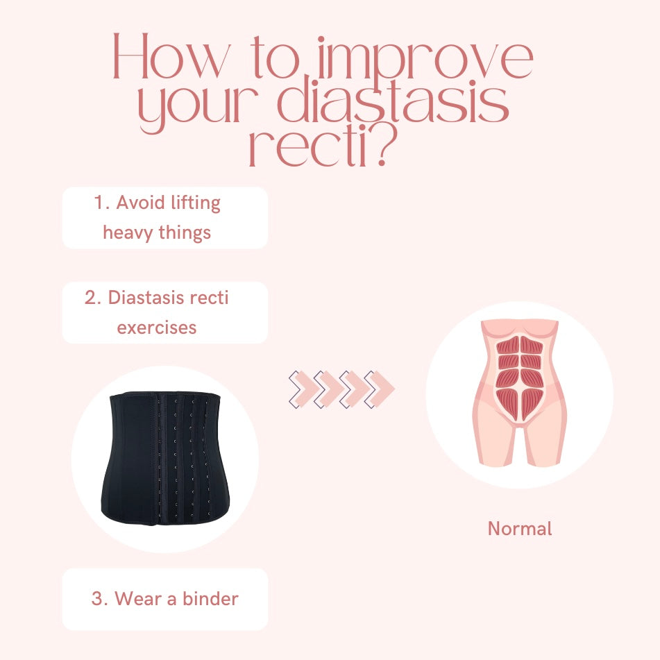 Diastasis recti often resolves itself over time, but avoiding lifting heavy things, doing the right exercises and wearing a belly binder during the "golden period" will encourage quicker and fuller healing.